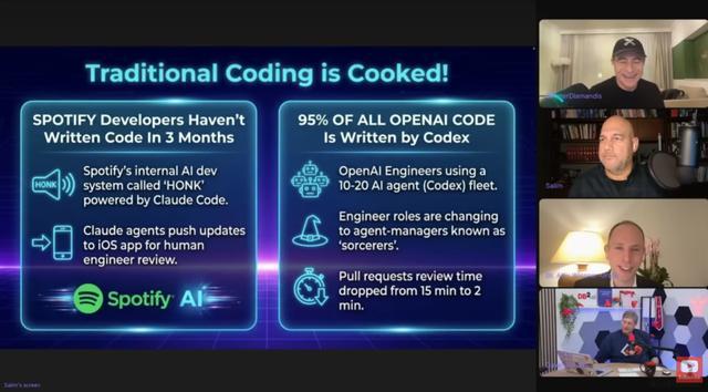 “传统的编程,已经彻底完了(Traditional Coding is Cooked)。”